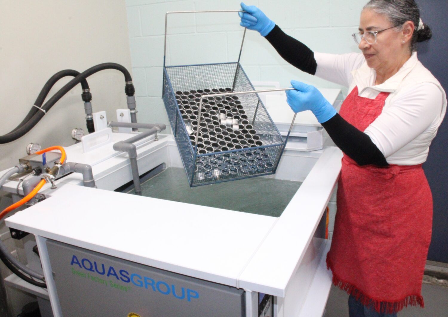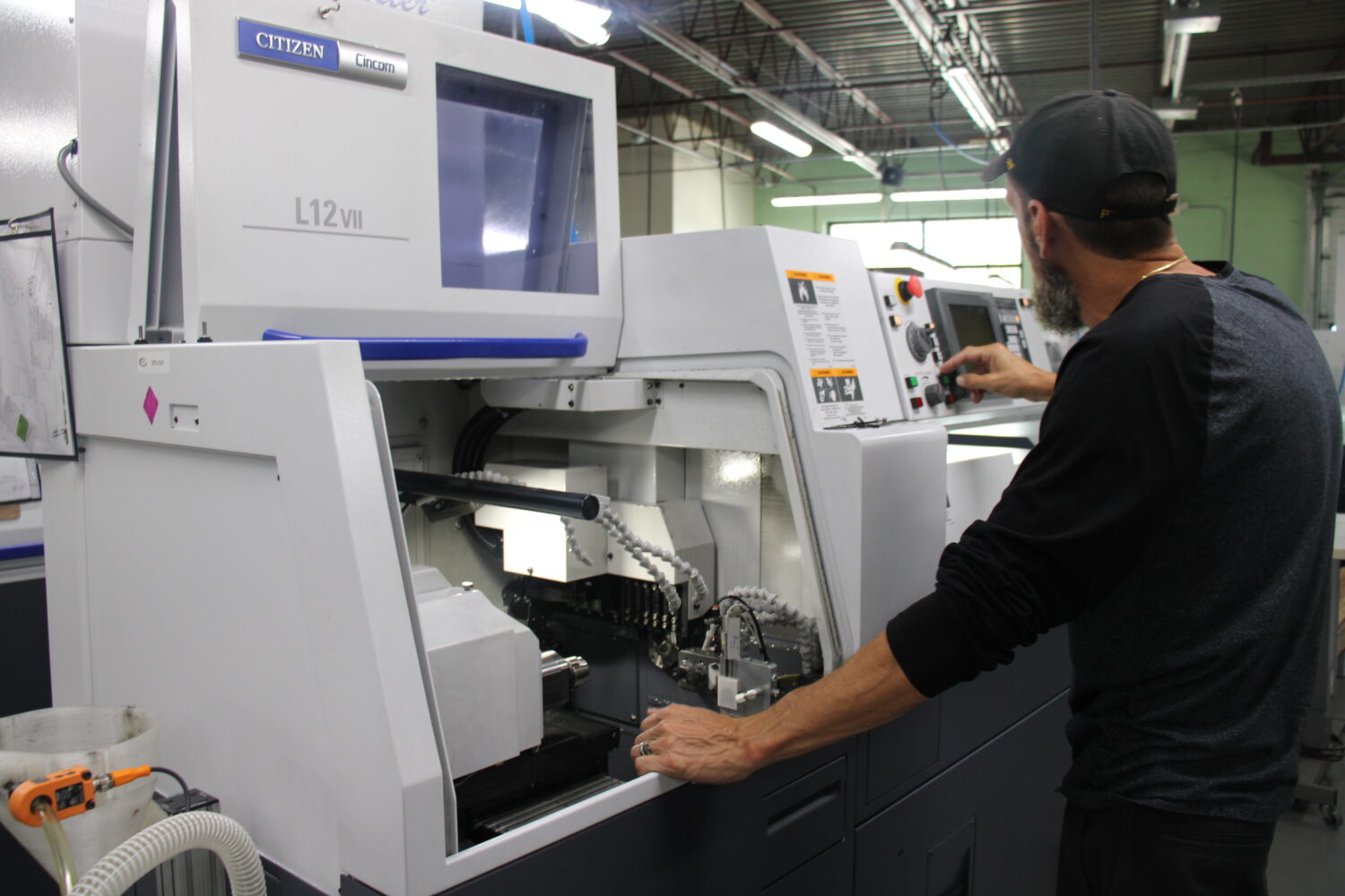 Today, that means 5-axis milling and 9-axis CNC Swiss lathes with pick-offs that can complete a part in one operation (link to Process). It also means employing low-frequency vibration (LFV) machining on our CNC Swiss lathes and high-pressure coolant to eliminate chip build-up. It means utilizing computerized programmable vision and touch probe measuring systems to verify your parts. And it even means innovating in our secondary processes, including ultrasonics and making our own de-ionized water for part cleaning.