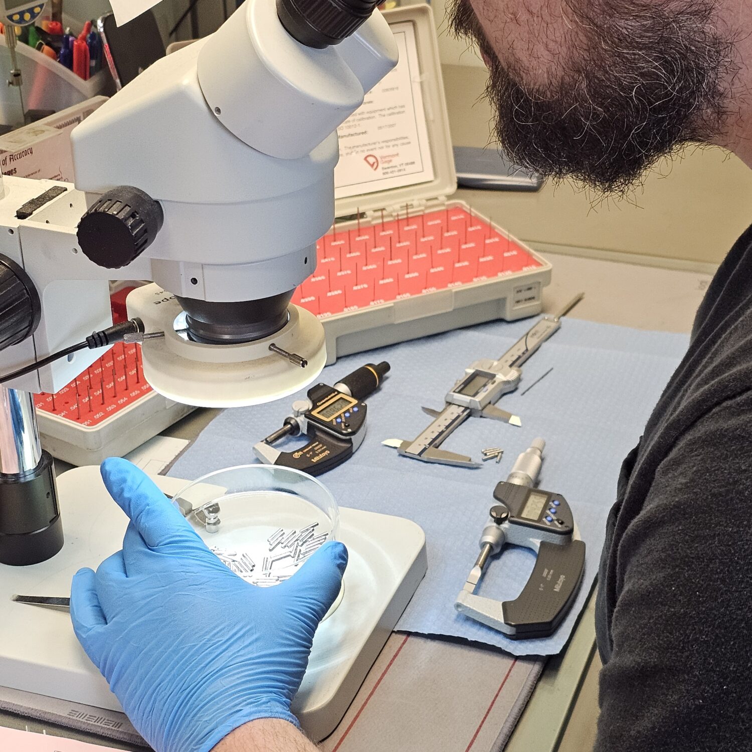 When they were ready to enter “pre-production” for the clinical trial, they turned to High Tech Turning. Why? Because they know our experienced team can machine parts like these in one operation on our advanced Swiss CNC lathes, and our process-focused mentality is what they need for high-volume manufacturing. HTT also has the capabilities in our inspection department to verify the parts meet specifications and can produce the dimensional data they need for the FDA.
