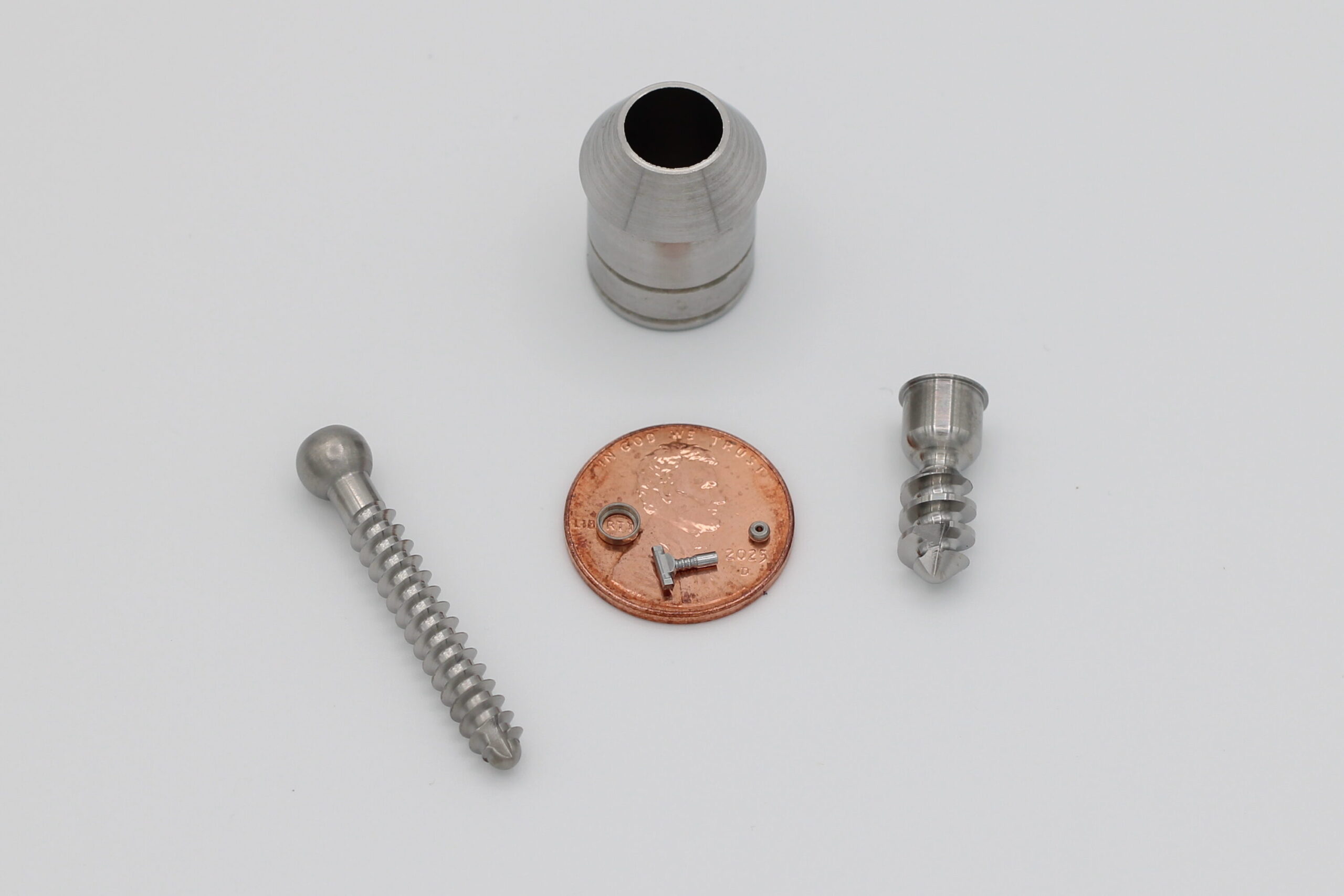 Micro-machining requires deeply specialized tools and expertise. HTT has developed the necessary experience to be comfortable machining high accuracy components that can only be seen in detail with a microscope. Stainless steel parts are produced in high volume quantities with OD’s under .030” and lengths under .020” with tolerances well under .0010” and thru holes down to .012” burr free.